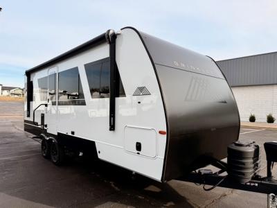 The Model Ix by Brinkley is your ticket to lightweight towing and exceptional features. This premium half-ton towable travel trailer features Brinkley's CraftSense building materials for a higher level of construction, along with a seamless laminated aluminum exterior with automotive grade full-body paint and modern graphics. You will stay powered up thanks to the power package with a 200-watt solar panel, and the Road Armor suspension will help provide a smooth tow from home to campground. The interior of the Model Ix includes premium residential cabinets with dovetail drawers, an ultra quiet and efficient A/C system, and a SoundCore Boom 2 Bluetooth waterproof speaker so you can listen to your favorite tunes indoors or outdoors!