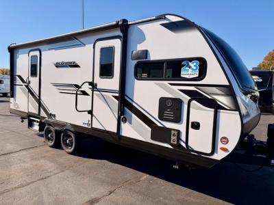 Sleeps 2 Slides 2 Length 26 ft 6 in Ext Width 8 ft Ext Height 10 ft 8 in Int Height 6 ft 6 in Interior Color Dune Gray Hitch Weight 785 lbs GVWR 7500 lbs Dry Weight 5855 lbs Cargo Capacity 1645 lbs Fresh Water Capacity 55 gals Grey Water Capacity 76 gals Black Water Capacity 38 gals Tire Size ST205/75R14D Available Beds Queen Refrigerator Type 12V Refrigerator Size 11 cu ft Cooktop Burners 3 Number of Awnings 1 LP Tank Capacity 20 lbs. Water Heater Type On Demand AC BTU 13500 btu TV Info LED Smart TV Awning Info 16' Max-Length Power w/LED Light Axle Count 2 Number of LP Tanks 2 Shower Type Radius Electrical Service 30 amp Solar Wattage 200 watts Similar Travel Trailer Floorplans