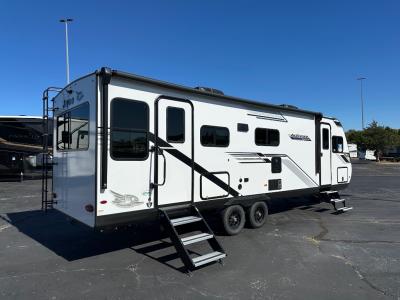 Sleeps 3 Slides 1 Length 31 ft 4 in Ext Width 8 ft Ext Height 10 ft 8 in Int Height 6 ft 6 in Interior Color Dune Gray Hitch Weight 630 lbs GVWR 7600 lbs Dry Weight 5930 lbs Cargo Capacity 1670 lbs Fresh Water Capacity 55 gals Grey Water Capacity 30.5 gals Black Water Capacity 30.5 gals Tire Size ST205/75R14D Furnace BTU 35000 btu Available Beds Queen Refrigerator Type 12V Refrigerator Size 11 cu ft Cooktop Burners 3 Number of Awnings 1 LP Tank Capacity 20 lbs Water Heater Type On Demand Tankless AC BTU 13500 btu TV Info LED Smart TV Awning Info 20' Max-Length Power w/LED Light Axle Count 2 Number of LP Tanks 2 Shower Type Standard Electrical Service 30 amp Solar Wattage 200 watts Similar Travel Trailer Floorplans