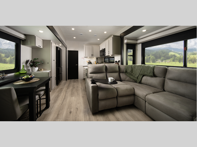 - Vinyl flooring in slide outs (no carpet)