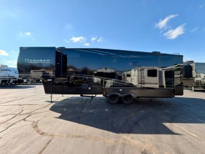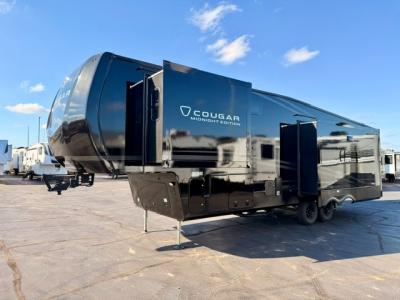 Spend more time having fun and less time worrying about your RV with the Keystone Cougar fifth wheel! These units have all that you will need for excellent vacations. The interior comes hardwood cabinet doors, solid surface kitchen countertops, an Oxygenics shower head and hose, plus a Vent-All window system. You will also appreciate the 12V charging stations throughout, the dual zone Bluetooth audio system, and the on-demand water heater for added comfort. The exterior is also fully outfitted with a convenience center, MaxTurn technology, Lippert axles with anti-lock braking system, and a Curt Road Armor shock absorbing equalizer for smooth towing. Each model is available with the optional Hero Edition. By choosing this edition, you can help support our nation's heros and their families by contributing to the Wounded Warrior Project. This optional package features an industry exclusive full-body paint matte finish, frameless windows, a glass entry door, blackout rims, and green LED exterior accent lighting; see dealer for more details!