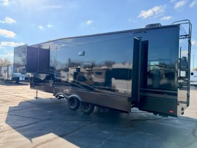 Sleeps 5 Slides 3 Length 35 ft 8 in Ext Height 13 ft 4 in Interior Color Umber Luxe Exterior Color Black Onyx Midnight, Phantom Gray Midnight, Hero Edition Options Hitch Weight 2120 lbs Dry Weight 11050 lbs Cargo Capacity 1850 lbs Fresh Water Capacity 75 gals Grey Water Capacity 76 gals Black Water Capacity 38 gals Tire Size ST235/80R16E Furnace BTU 30000 btu Available Beds Queen Refrigerator Type 12V Refrigerator Size 16 cu ft Cooktop Burners 3 Number of Awnings 2 LP Tank Capacity 30 lbs Water Heater Type Tankless On Demand AC BTU 15000 btu TV Info LR LED HDTV Awning Info 10' & 13' Electric with Gas Strut Arm with Dotless Neon Style LED Lighting Axle Count 2 Washer/Dryer Available Yes Number of LP Tanks 2 Shower Type Shower w/Seat Electrical Service 50 amp Similar Fifth Wheel Floorplans