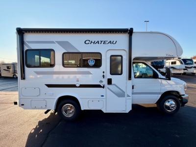 With any Chateau ESpec Class C gas motorhome by Thor Motor Coach, you will find convenient amenities, a modern interior, and a reliable Ford E-Series chassis, with an optional Chevy chassis on select models to power your adventures. There is welded tubular aluminum roof and sidewall cage construction, a one-piece fiberglass front cap, and a premium one-piece domed roof membrane for added strength. Residential vinyl flooring will be easy to keep clean, and you'll love the sleek look of the Hampton Collection two-toned cabinets. These motorhomes also include a 50 State 4.0 kW dual gas/LP generator and a 30-amp shoreline power cord to keep you going, along with a tankless water heater and 13,500 roof front A/C to ensure your comfort!