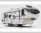 Time spent at the campground in this fifth wheel will be time well spent! Once you arrive, you can unload the unobstructed pass-thru storage, put out the two power awnings, and grab a cold drink from the outdoor mini refrigerator. Head inside to relax on the tri-fold sleeper sofa or theater seating across from the LED HDTV. The rear kitchen includes everything you need to make meals each day, including a pull-out countertop for more space plus a pantry and 12V refrigerator for food storage. The full bath with a 30" x 36" shower will let you freshen up before bed, and speaking of bedtime, the king bed in the front private bedroom is sure to bring a great night's rest. There are also dual wardrobes and nightstands here for your things, plus a third wardrobe with washer and dryer prep if you want to add these appliances.ย
