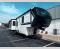 It won't be hard to find comfort in this fifth wheel with triple slides for more space, a spacious front bedroom, and a rear living area with a comfy sofa! Once you've unloaded the exterior pull-out storage tray, you can put out the two awnings, then relax in your camp chairs. A four-burner range inside will let you make lunch for your crew, and a spacious kitchen island will provide more counter space. There is also a pantry, overhead cabinets, plus a second, swing-out hidden pantry behind the entertainment center with a fireplace. The pull-out dinette, power theater seating, and rear sofa will give you plenty of seating options, and the dual opposing slides in the combined kitchen and living area will create an open floorplan you are sure to love. Head towards the front to freshen up in the spacious bath with ample counter space, then enjoy a perfect night's rest in the front bedroom, complete with a king bed slide, dual nightstands, front wardrobe, plus a second wardrobe with washer and dryer prep.