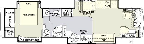Generous Storage: The raised rail chassis allows for large full pass-through basement storage bays with flush floors. Interior storage is also plentiful.